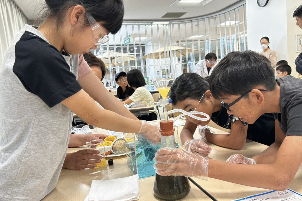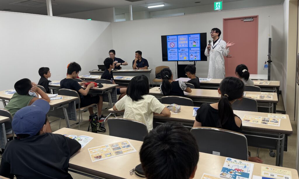 (2025/7/23)こまきこども未来大学で講座を開催しました 投稿日: 2025年11月17日 投稿者: 投稿ユーザー 2025年7月23日 こまきこども未来大学で講座を開催しました 小牧市「こども夢・チャレンジNo.1都市宣言」の一環として、夏休みに開催された「こまきこども未来大学」で講座を開催しました。 講座名は「バイオの力でエコ探検!~実験でわかる未来のエネルギー~」。小牧市内の小学4~6年生16名に参加いただき、食品ロスの現状とバイオス小牧の取り組みを動画で学んだあと、実際に食べ物からメタンガスを発生させる実験を行いました。